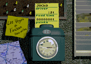 It's Desert Bus, except the bus goes 1,000 miles an hour. Honestly, what more could you want? (aside from an enjoyable game) If you like numbers: Internally, Desert Bus actually does all its calculations in terms of meters. In the original game, the bus has a top speed of 0.375 meters per frame, which works out to 81.000 km/h or 50.33 mph (this despite the game's claim of a top speed of 45 mph; the conversion from metric is fudged to make this work). The game assumes a distance of exactly 648,000 meters from Tucson to Las Vegas, meaning a full-speed drive will take precisely 8 hours. So what does the hack do? First, it raises the bus's top speed to 0.499 meters/frame (108 km/h or 67.1 mph), which is the highest value possible without causing complications. That's a pretty paltry difference, though. The bulk of the speedup is achieved by running the most important logic calculations an extra 15 times per frame, which essentially causes the game to run 16 times faster on top of the base speed change. Thus, the new top speed of the bus is approximately (0.499 * 16) = 7.984 meters/frame, which comes out to 1,724.544 km/h or 1071.582 mph -- in other words, more than 21 times the original speed. That means a one-way trip from Tucson to Las Vegas will take about 22 minutes (though due to rounding and the lag caused by the extra processing, the game reports the time as 21 minutes while it probably takes closer to 25 minutes in real time). The speedup also affects the handling of the bus, of course, making for much faster-paced gameplay. Unforunately, it turns out that even at 1071 miles an hour, Desert Bus is still Desert Bus. But hey, it sounds cool, right? No? |