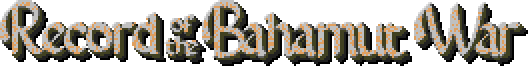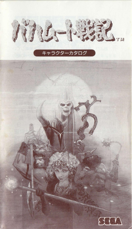 This is a digitized and translated version of the supplementary character catalog for Bahamut Senki (Record of the Bahamut War). See also the instruction manual. Translation by TheMajinZenki; digital conversion by Supper. Based on scans provided by Sega Retro; the originals can be found on their Bahamut Senki page.