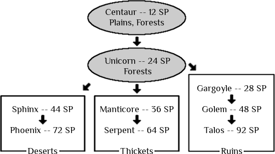 Magic MissileAttacks one enemy Squadron with a magical lightning arrow. Melt ArmorBestows the ability to fly upon one target Squadron. |