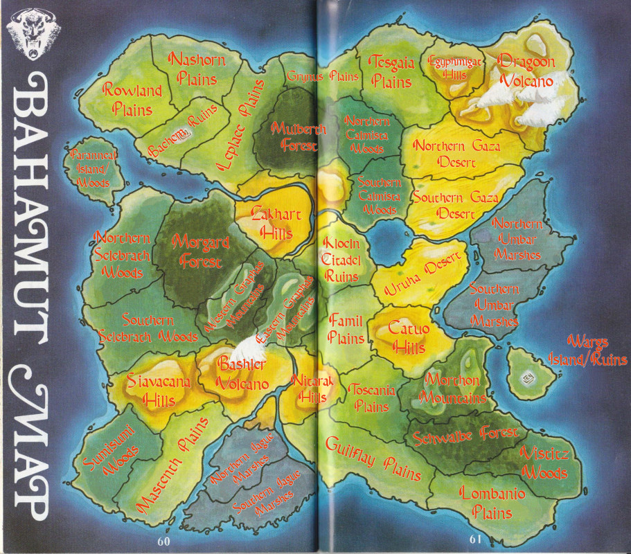 This is a digitized and translated version of the instruction manual for Bahamut Senki (Record of the Bahamut War). See also the supplementary character catalog. Translation by TheMajinZenki; digital conversion by Supper. Based on scans provided by Sega Retro; the originals can be found on their Bahamut Senki page.