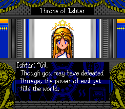 The Blue Crystal RodSource code on GithubAfter many harsh (some might even say "unfair") ordeals, the Golden Knight Gilgamesh and the Oracle of Ishtar Ki have at last defeated the demon Druaga and escaped from his accursed Tower! Unfortunately, their problems are far from over. Though they've recovered the stolen Blue Crystal Rod, not only must they now must find a way to return it to heaven so it can bring peace to the world again, their long journey will have been for naught if they don't convince the gods of humanity's worth through their actions along the way. But this tale is one with many endings. How – and whether – Gil and Ki complete their quest is in your hands! Developed by Game Studio and published by Namco for the Super Famicom in 1994, The Blue Crystal Rod is the fourth and (canonically) final game in the Tower of Druaga series, the "Babylonian Castle Saga". A drastic departure from the notoriously cryptic action games that preceded it, The Blue Crystal Rod is instead a story-driven adventure game whose biggest selling point is its broadly-branching storyline, with 48 different endings. Officially, none of these is considered the "true ending"; players were invited to treat their personal favorite as the conclusion to the story. This patch fully translates the game into English. See the readme included in the download for more information.