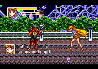 Download patch (v1.0)Source code on GithubThe Dark Kingdom has been resurrected by an unknown force. As one of the five Sailor Senshi of love and justice, battle your way to the enemy's stronghold and protect the earth! This is an English translation patch for the 1994 Mega Drive beat-'em-up Bishoujo Senshi Sailor Moon (Pretty Soldier Sailor Moon), developed by MA-BA and of course based on the popular franchise by Naoko Takeuchi. While loosely similar to its SNES cousin (which as of this writing hasn't been translated to English), this version features considerably different stages, gameplay, music, and plot, so it's worth a look even if you've played that port. See the readme included in the download for more information. CreditsSupper -- HackingEien Ni Hen -- Translation Filler -- Special Thanks