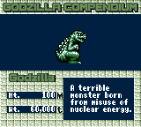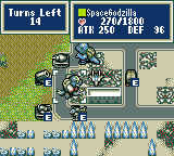 Download patch (v1.1)Source code on GithubGodzilla's here, time to trample Tokyo. Godzilla: Kaijuu Daishingeki (Godzilla: Monsters Attack, derived from the 1969 film All Monsters Attack) is a 1995 strategy/fighting hybrid game for the Game Gear. It features five missions loosely based on various Godzilla films, with the player choosing to play as either Godzilla and friends (aiming to destroy a certain amount of the city) or the JSDF (trying to prevent it). The overall battle plays out in a turn-based strategic view, while combat between units takes place in action-based one-on-one fighting matches. This patch fully translates the game into English. See the readme included in the download for more information. Credits