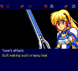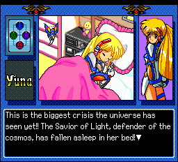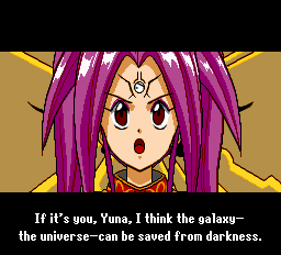 Galaxy Fraulein YunaSource code on GithubYuna Kagurazaka was just your ordinary high school girl in the year 2299 – a bit carefree and more than a little absent-minded, but nothing special…until she won the Galaxy Fraulein Contest and rocketed to idol stardom! But when her fellow contestants begin disappearing one by one only to turn up wearing power armor and trying to kill her, she discovers her true destiny: she is the Savior of Light, protector of the galaxy, and must fight to keep the forces of darkness from conquering the universe! Can Yuna take down the evil Thirteen Frauleins of Darkness, or will hinging the fate of the cosmos on the whims of a flighty teenage girl prove a colossal mistake?…Possibly both. Ginga Ojousama Densetsu Yuna, officially translated as Galaxy Fraulein Yuna, is a 1992 adventure game (visual novel/digicomic) by Red Company and Will for the PC-Engine Super CD-ROM² system, and the first entry in the Galaxy Fraulein Yuna series. Originally inspired by a series of illustrations of Gundam mecha anthropomorphized as cute girls, the concept was reworked into an original video game property and eventually achieved considerable success amidst Japan's mid-to-late-'90s galge boom, becoming the basis for a string of games, several albums, multiple art CDs, and two OVA series – out of which only the OVAs ever saw release outside Japan. This patch fully translates the game into English. It translates all text, subtitles the 60+ minutes of animated cutscenes, and adds full karaoke subtitling (transliteration and translation) to in-game songs. A translation of the instruction manual is also provided; it comes bundled with the download or can be read online (though be warned – it contains blatant spoilers!). See the readme included in the download for more information.