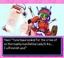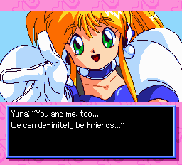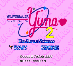 Galaxy Fraulein Yuna 2: The Eternal PrincessSource code on GithubWith the forces of darkness once again at bay, life seems to have returned to normal – or as close to normal as it gets for high school idol and galactic savior Yuna Kagurazaka. But trouble is brewing! After an unfortunate encounter with her self-proclaimed rival Erika Kousaka, Yuna accidentally summons a planet-destroying warship, the "Eternal Princess," to Earth. Now Yuna, partnering with mysterious android girl Yuri Cube, has scant days to try to take out the beacons guiding the ship before it arrives and annihilates the Earth, all while battling the deadly assassins of the "Erika 7." Is there any hope for the planet!? Ginga Ojousama Densetsu Yuna 2: Eien no Princess (Galaxy Fraulein Yuna 2: The Eternal Princess) is a 1995 adventure game/visual novel for the PC-Engine Super CD-ROM² system, developed by Red Company and Will and published by Hudson Soft. The sequel to the original Galaxy Fraulein Yuna, it generally follows in its predecessor's footsteps on a larger budget, with bigger and better visuals, full voice acting, and much more polish all around. Compared to the first game, it drops most pretenses of interactivity in favor of basically being a low-res OVA that requires periodic button presses to watch, with the occasional battle or minigame to break things up. And there's sometimes dungeon crawling, for some reason? This patch fully translates the game into English. A translation of the instruction manual is also provided, thanks to Mafoo343; it comes bundled with the download or can be read online. See the readme included in the download for more information.