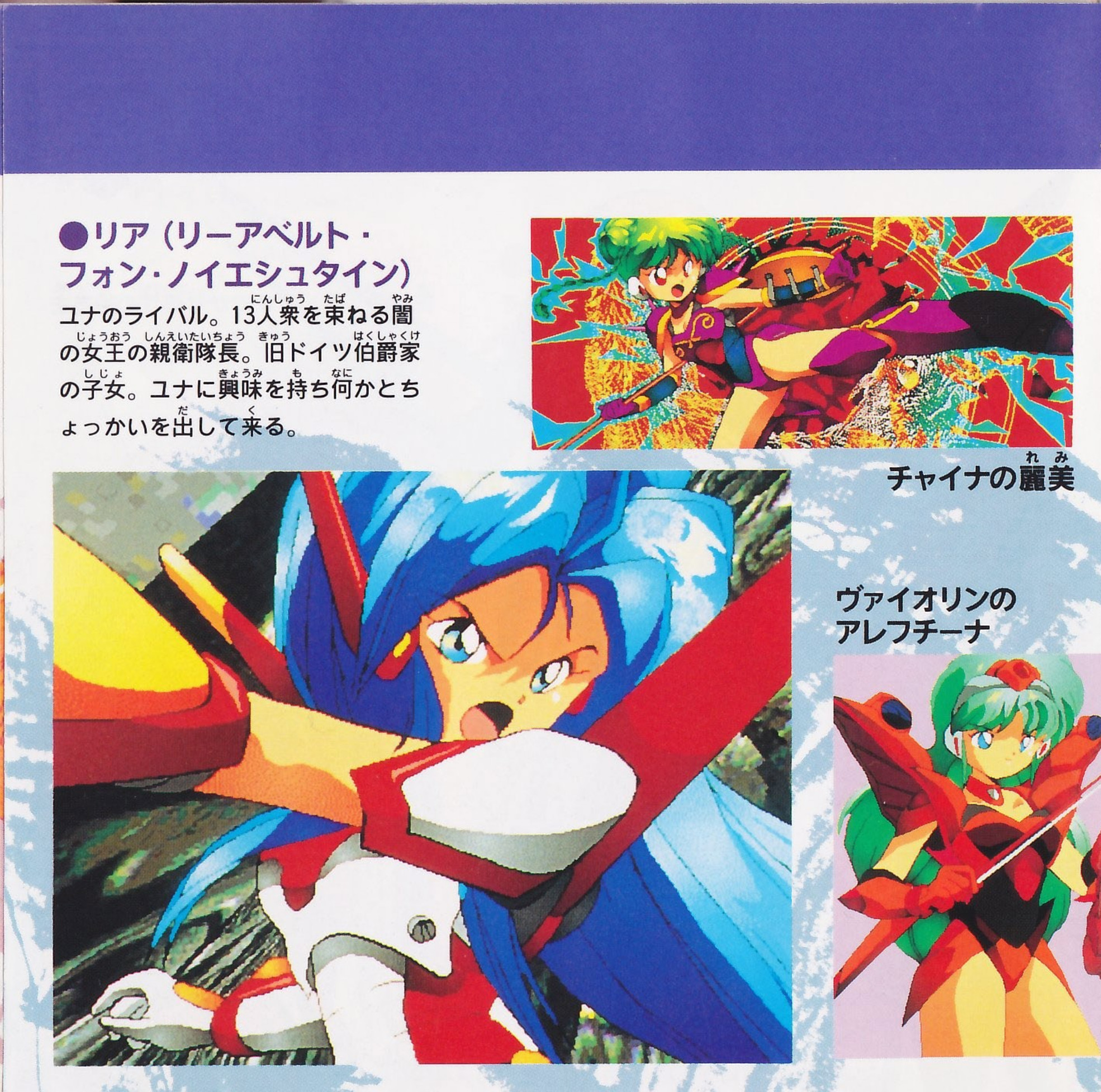 Yuna’s rival. Head of the imperial guard of the Dark Queen, who controls the Thirteen. She is the daughter of an old German count. She has an interest in Yuna, and meddles in her affairs in various ways.