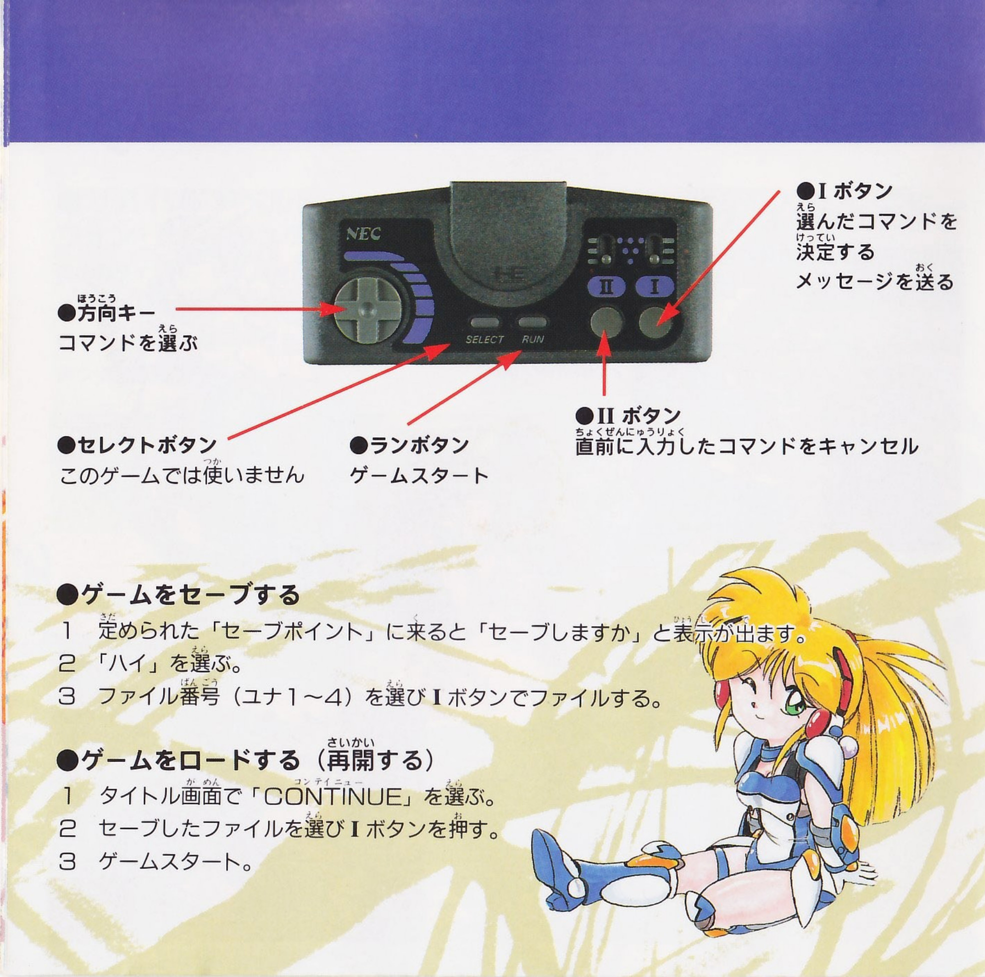 This is a translation of the instruction manual for Ginga Ojousama Densetsu Yuna (Galaxy Fraulein Yuna). Translation by Mafoo343; web formatting by Supper. Scans from Archive.org.