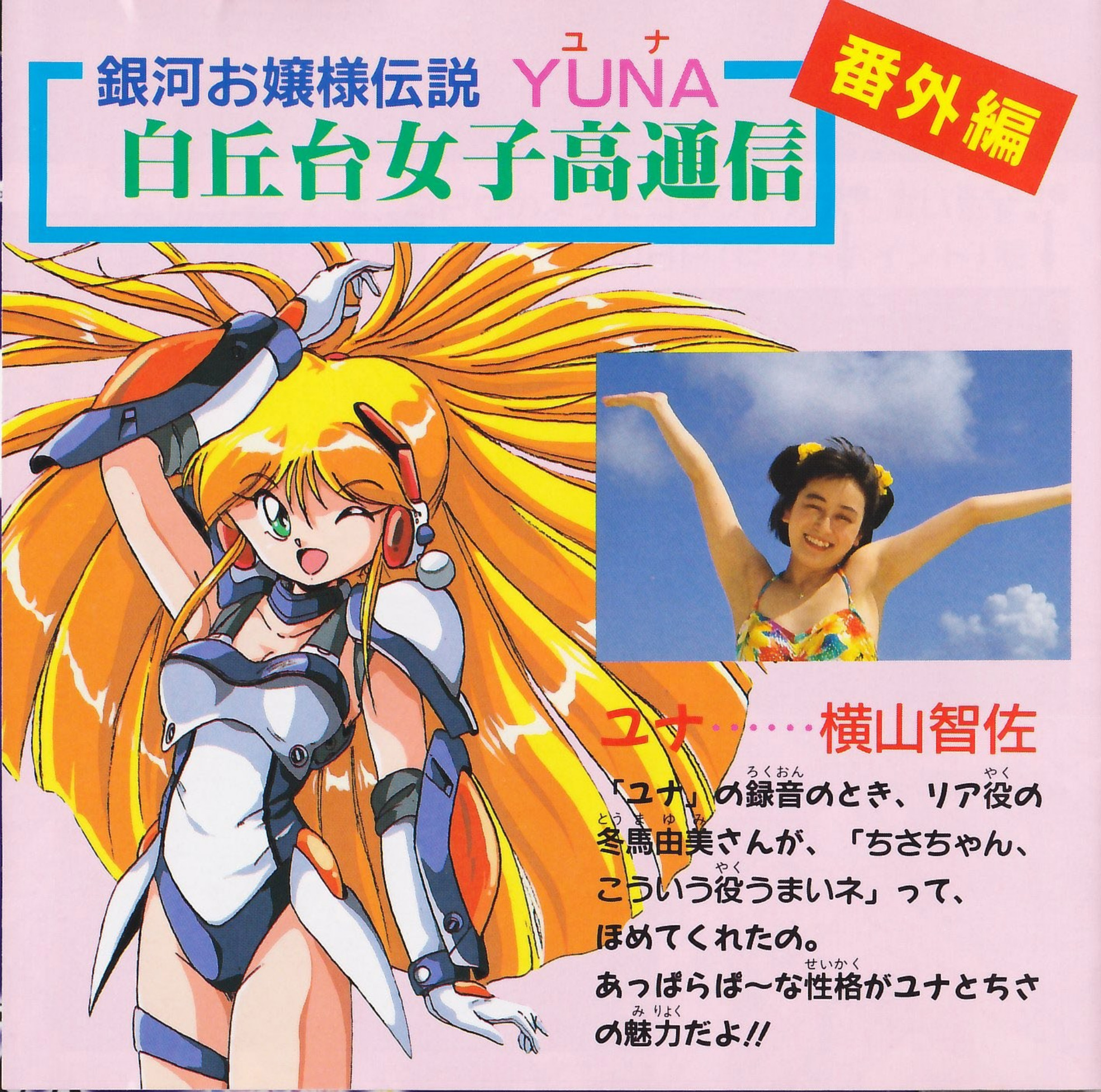 Our protagonist Yuna is a first-year at Shiraokadai Private School for Girls, which is widely renowned as a “school for frauleins1.” She’s a gentle and carefree soul, and more than a little absent-minded, but when she wins the “Galaxy Fraulein Contest,” her destiny takes a massive turn! Now she finds herself saddled with defending the universe from crisis! From the dark Thirteen to the Queen of Darkness herself, it’s nothing but fearsome foes one after another…Can Yuna really be the “Savior of Light” and protect the peace of the entire universe!?